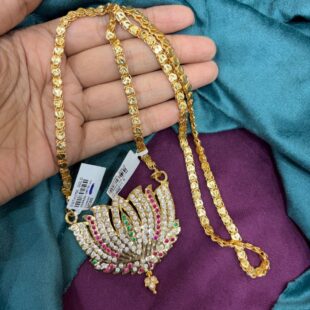 Ideal for weddings, festive celebrations, and parties, American Diamond Jerkon Pendant pairs effortlessly with traditional as well as modern outfits, adding a stylish and elegant touch to your overall look.