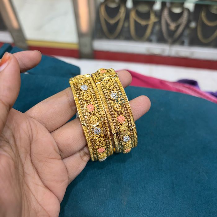 The Gold Plated Bangles radiate classic beauty with their rich golden shine and intricate craftsmanship. Designed to look just like real gold, these bangles add a touch of elegance to any outfit. Their smooth finish and durable plating make them perfect for both daily wear and festive occasions. A timeless choice, gold plated bangles effortlessly blend tradition with modern style.
