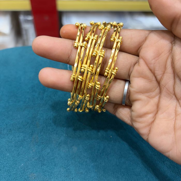 Gold Plated Bangles radiate elegance with their lustrous finish and intricate designs. Crafted to resemble real gold, they add a graceful charm to both traditional and modern outfits, perfect for everyday wear or festive occasions.