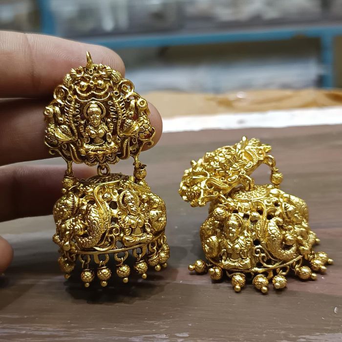 Matt Finish Premium Quality Jimiki is beautifully crafted with a rich matte gold finish that gives a grand, antique and traditional real-jewellery appearance. The elegant dome design combined with the smooth matte texture creates a classic and royal look. Designed with intricate detailing and superior craftsmanship, these jimikis offer a premium and festive appeal that instantly enhances your overall styling. The matte polish adds depth and sophistication, making them stand out as a statement accessory. Perfectly suited for weddings, festive occasions, receptions, and cultural events, Matt Finish Premium Quality Jimikipairs gracefully with sarees, lehengas, and traditional outfits, adding a majestic and elegant touch. The sturdy structure and high-quality finish ensure durability and long-lasting beauty, while the comfortable design allows confident wear during special occasions. A timeless piece for those who love traditional jewellery with a luxurious and refined matte finish.